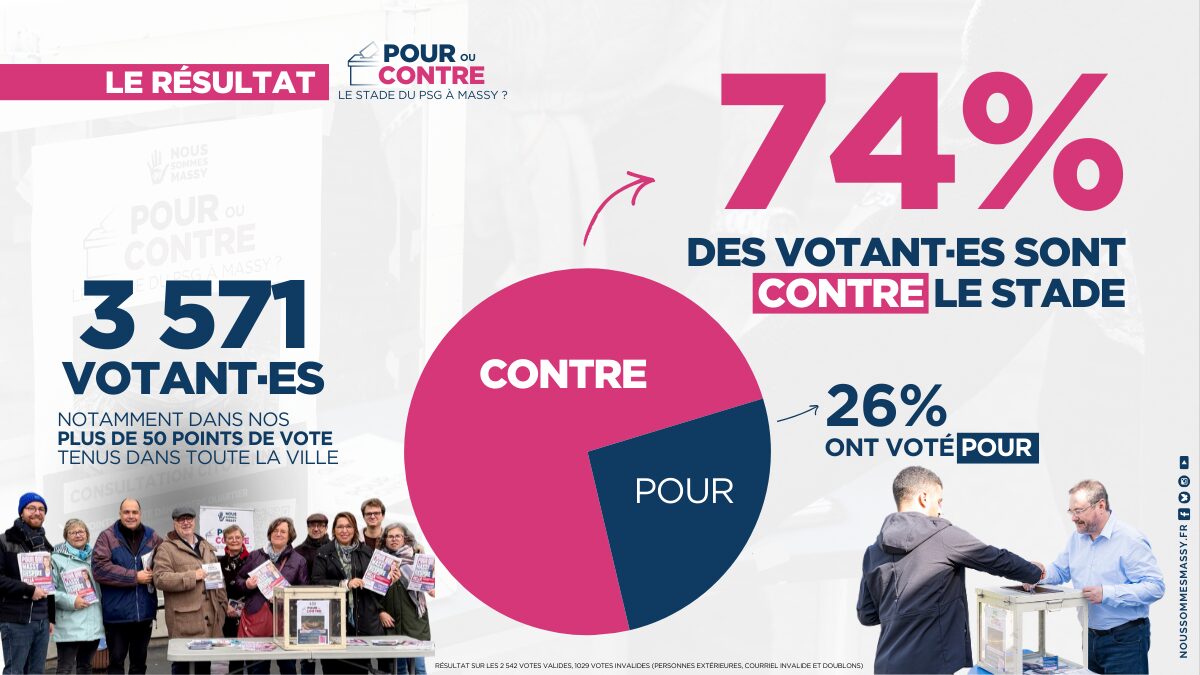 Un résultat sans appel : 74% des votants disent NON à la consultation citoyenne sur le projet de stade du PSG à Massy