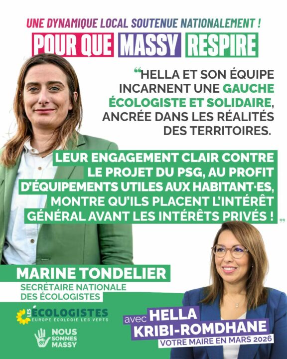 « Le stade du PSG ? Un projet déconnecté des besoins des habitants. Nous, nous défendons des équipements sportifs accessibles, des espaces verts et une vie de quartier préservée. Le 15 mars, choisissons Massy, pas les mirages ! »